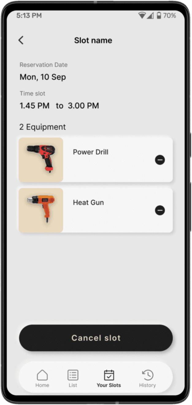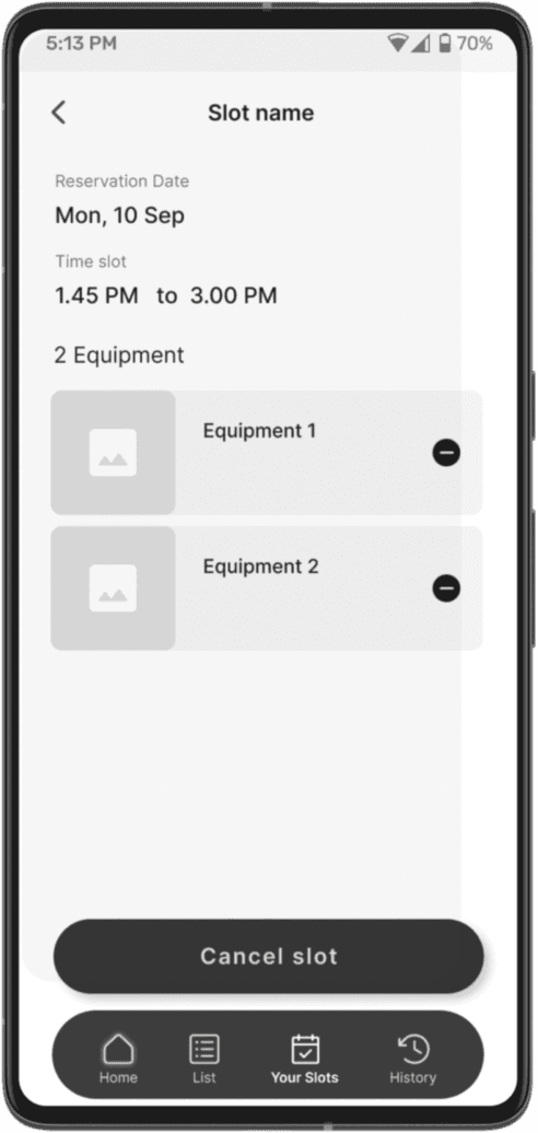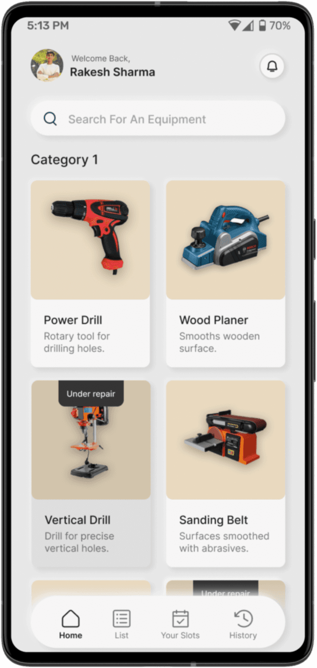 ProtoFlow provides all details about a piece of equipment, it’s use and status (available, under repair etc) so that students can avoid crowding the lab and can plan themselves well. It allows tracks all equipment preventing it from getting misplaced.