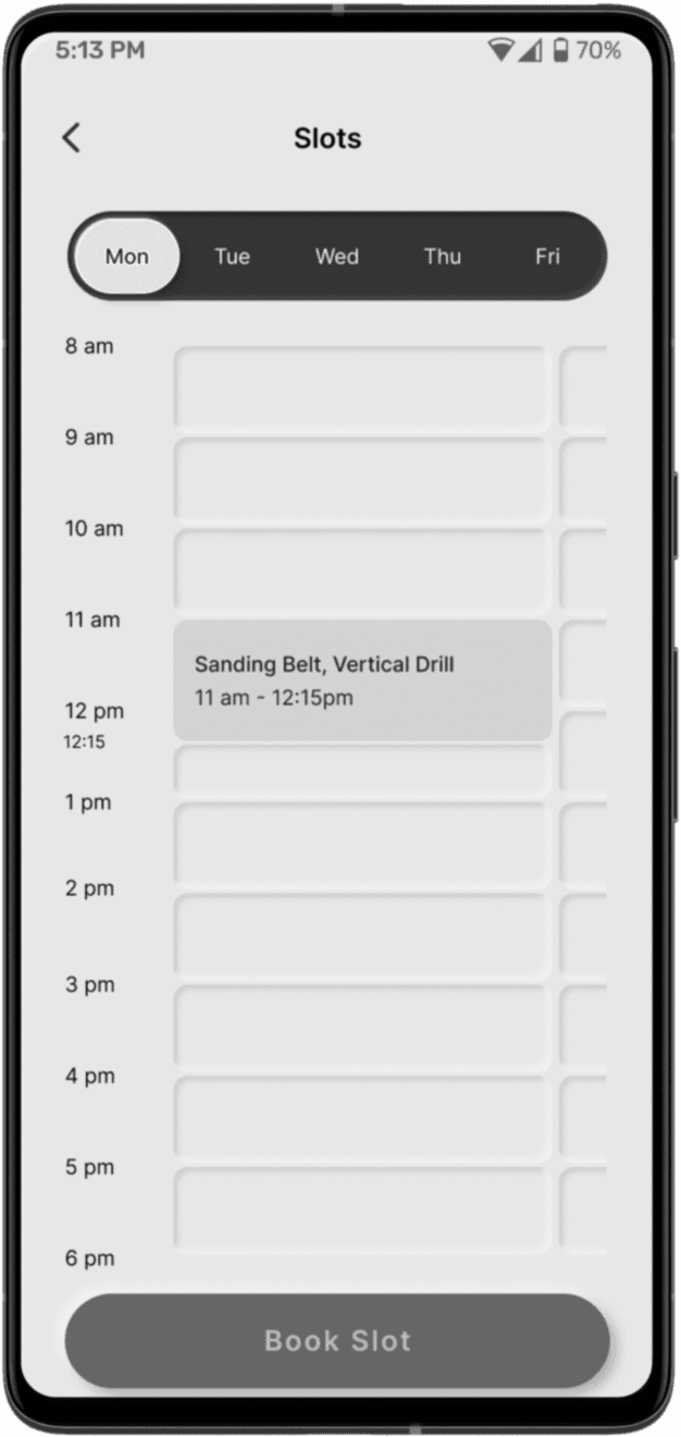 Research indicates that the labs are most crowded during exams and most students rush to use it at the same time. ProtoFlow can be used before-hand to ensure everyone can find the piece of equipment that suits them at a preferred time.